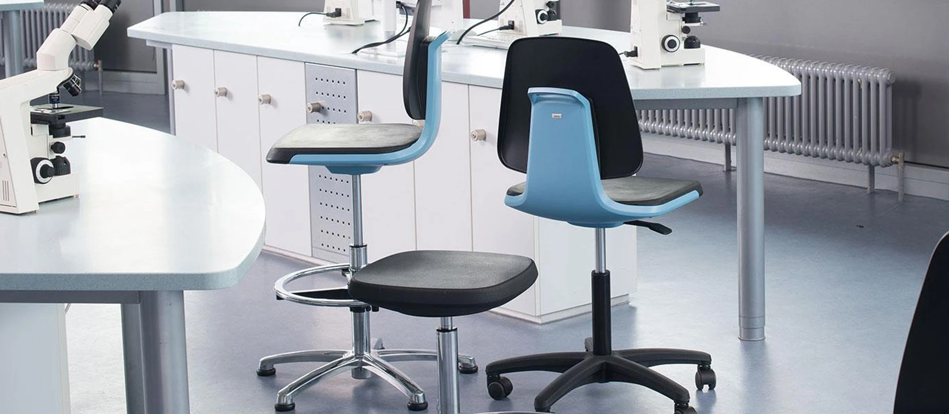 Il design igienico concepito appositamente, l’alleggerimento mirato del corpo in caso di posture tipiche da laboratorio e la struttura compatta delle sedie da lavoro Bimos da laboratorio garantiscono condizioni ottimali in un ambiente di lavoro all’avanguardia.