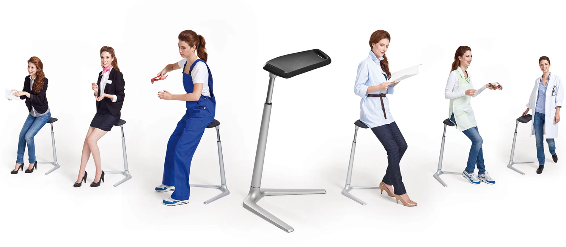 In tutte le situazioni lavorative nelle quali le persone non possono stare sedute, i sostegni per il lavoro in piedi di Bimos offrono il comfort necessario. Consentono ampio margine di movimento e di spazio e sono leggeri da trasportare e da impilare.